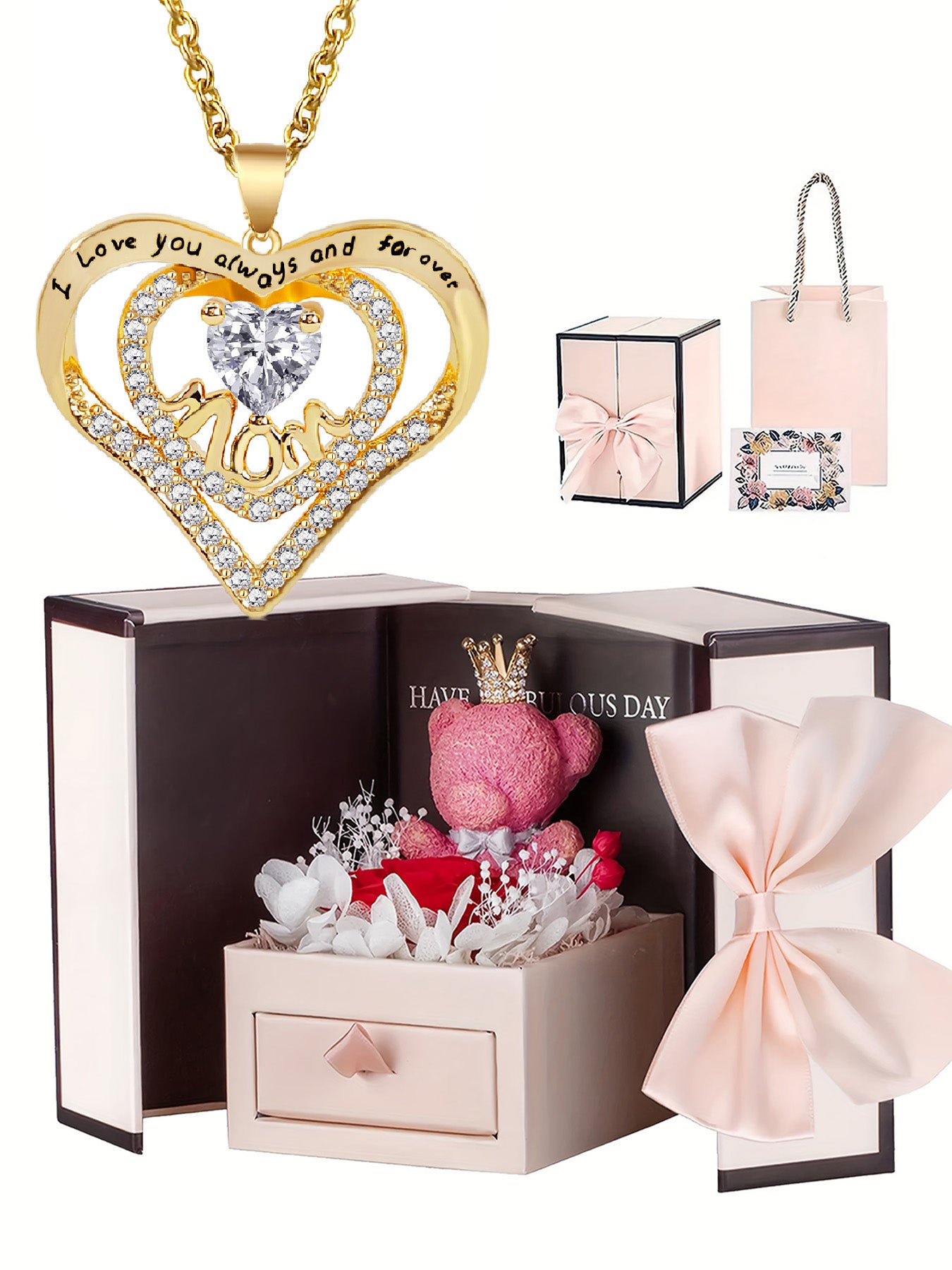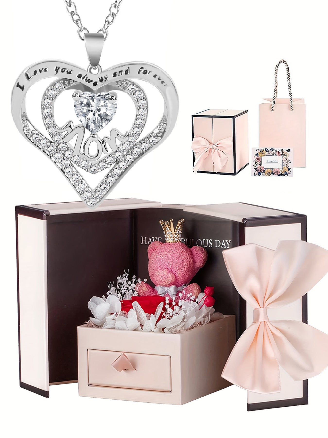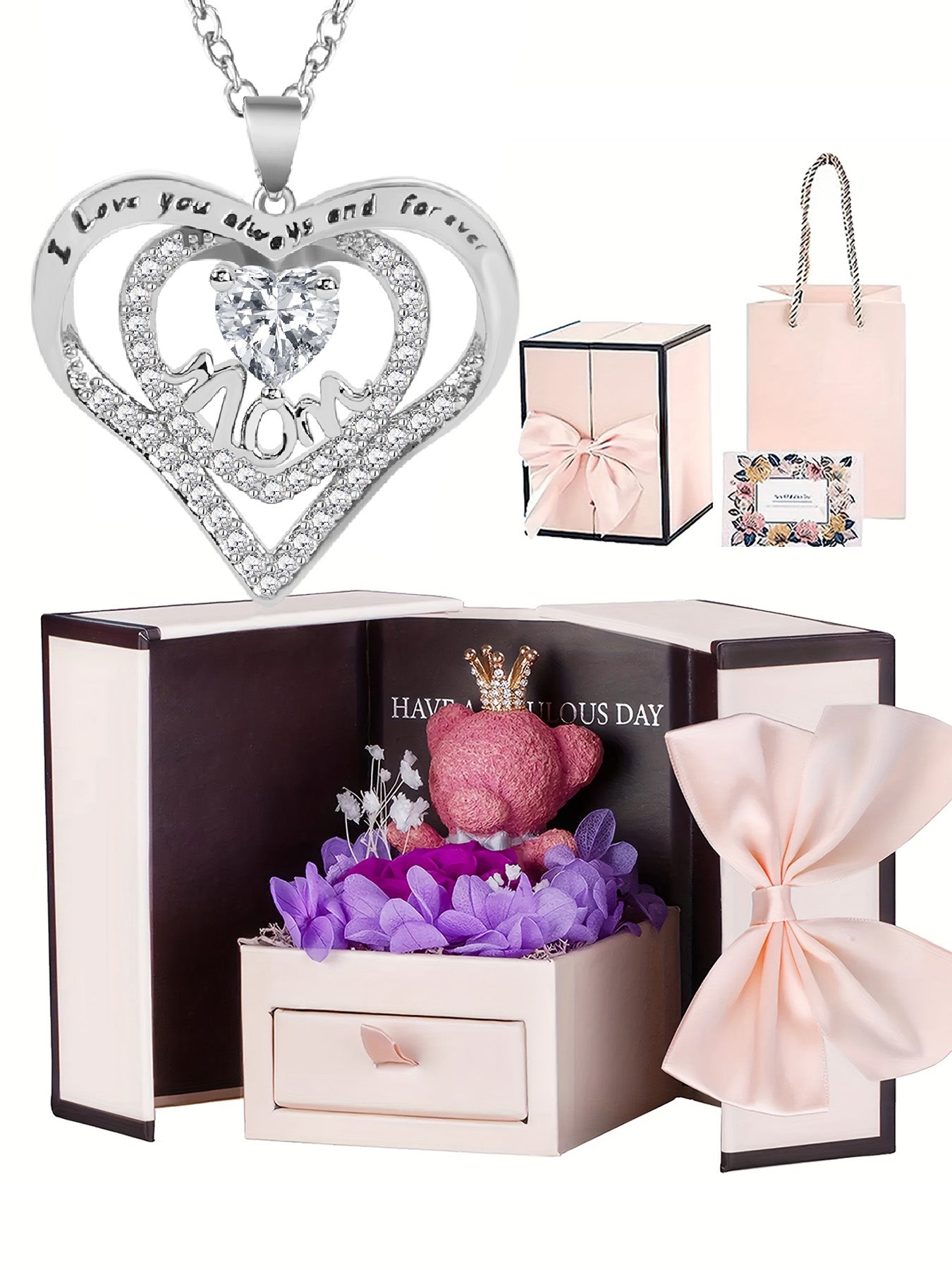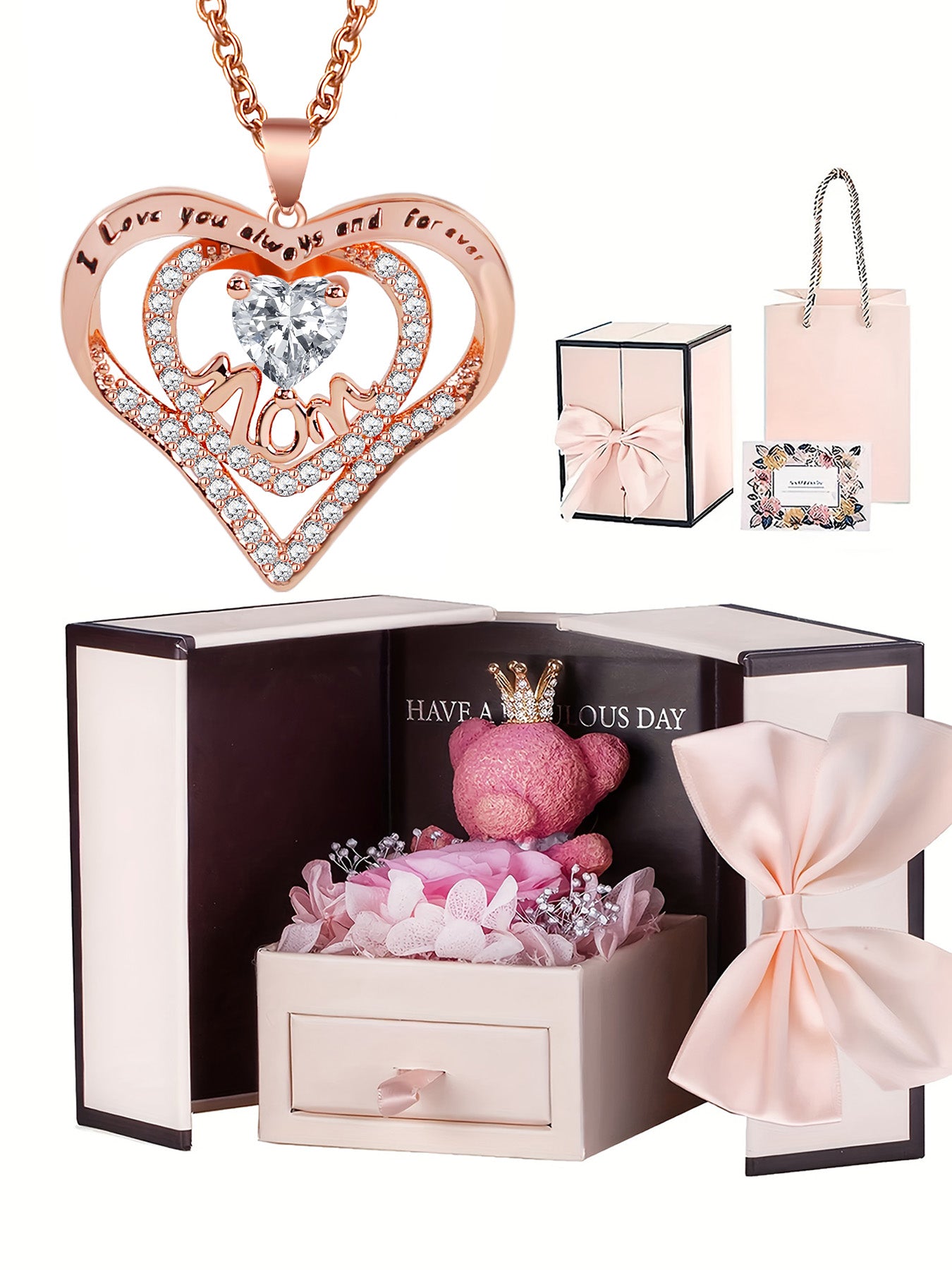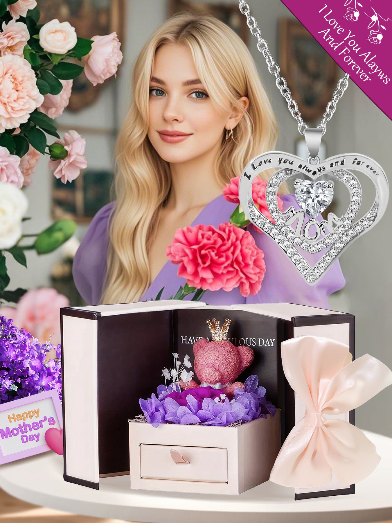Mom Gift: The cute teddy bear symbolizes warmth and companionship, The unique production technology ensures that the roses will not wilt, no pollen, no sunlight required, This rose gift set is the best gift for mom!