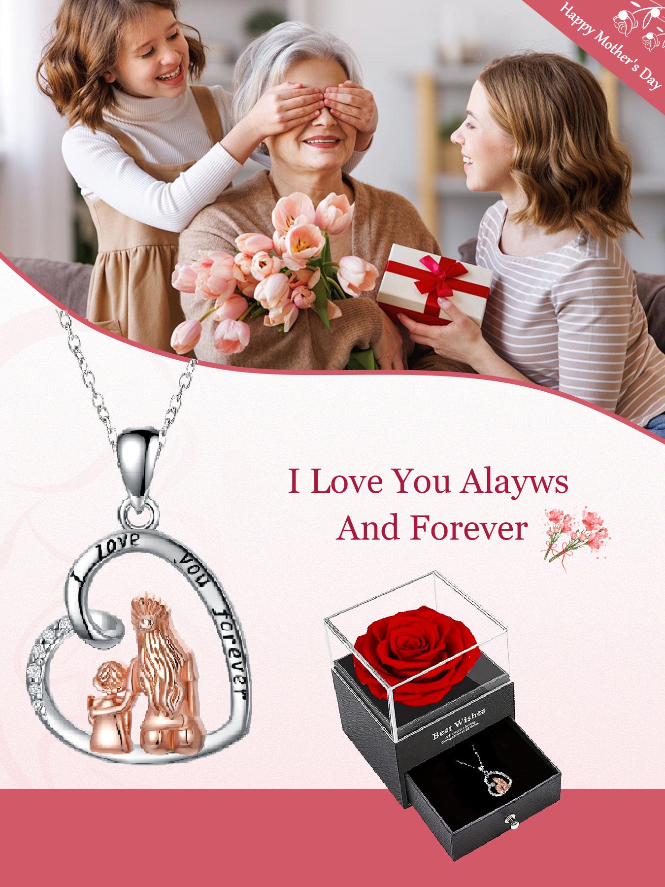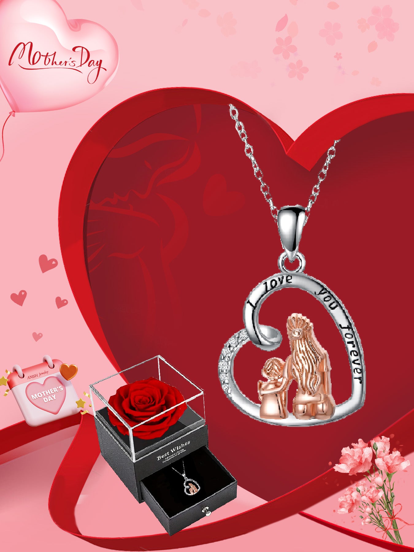 Beautiful design heart necklace with rose gift box, women's charm necklace, women's necklace for mother's day, anniversary gift for mom grandma, mother's day gift, party fashion jewelry, women's necklace for mom, anniversary gift, women's mom necklace, wo