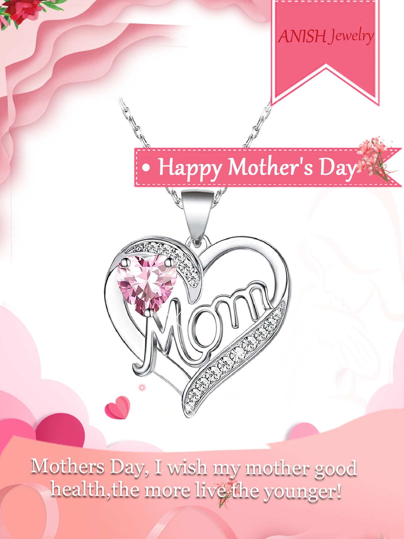 Double Heart Love Simple Pendant Necklace Double Door Rose Gift Box, Women's Mother's Necklace, Women's Rose Gift Box Necklace, Mother's Day Gift, Holiday Gift for Mom and Grandma, Gift for Wife, Mother's Day Gift for Mom, Jewelry Birthday Gift for Women,