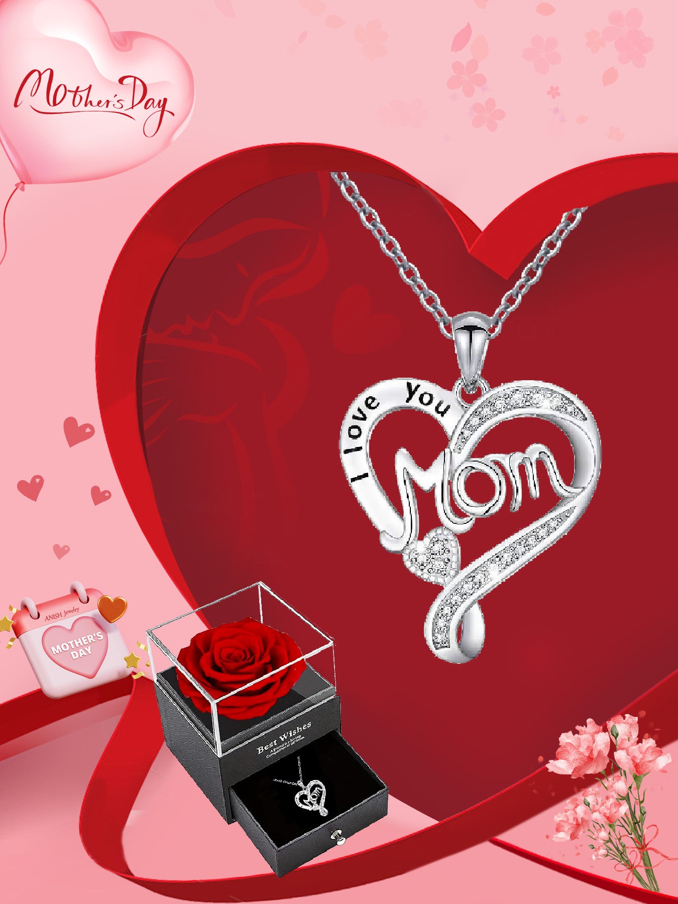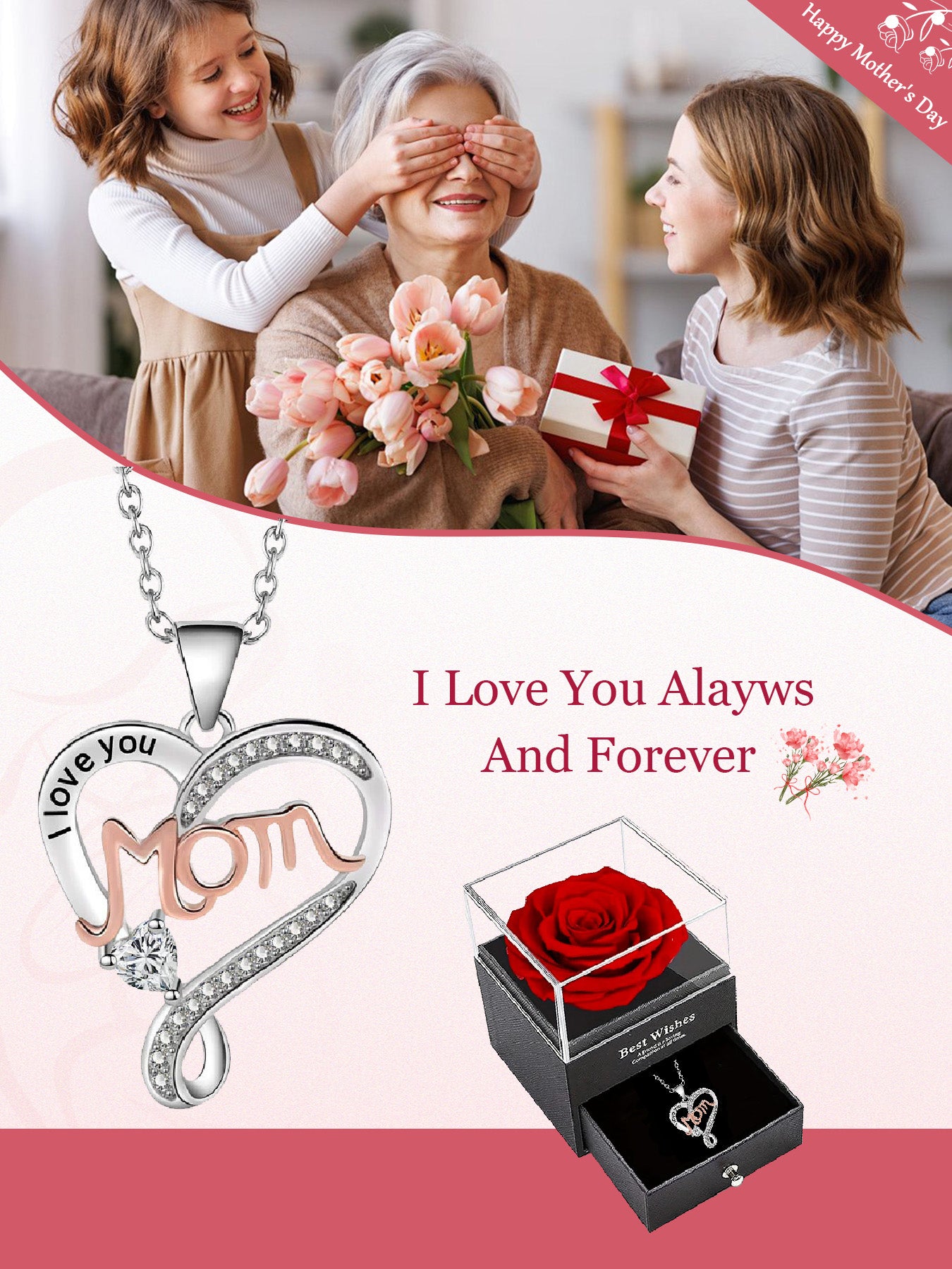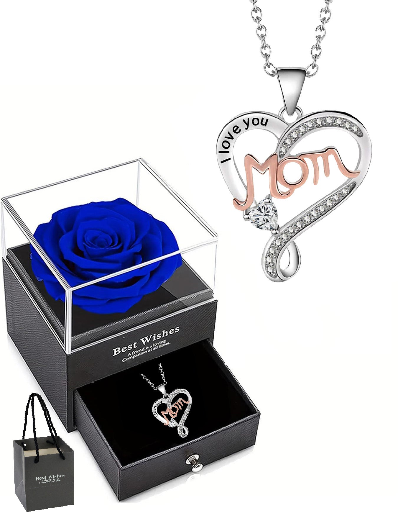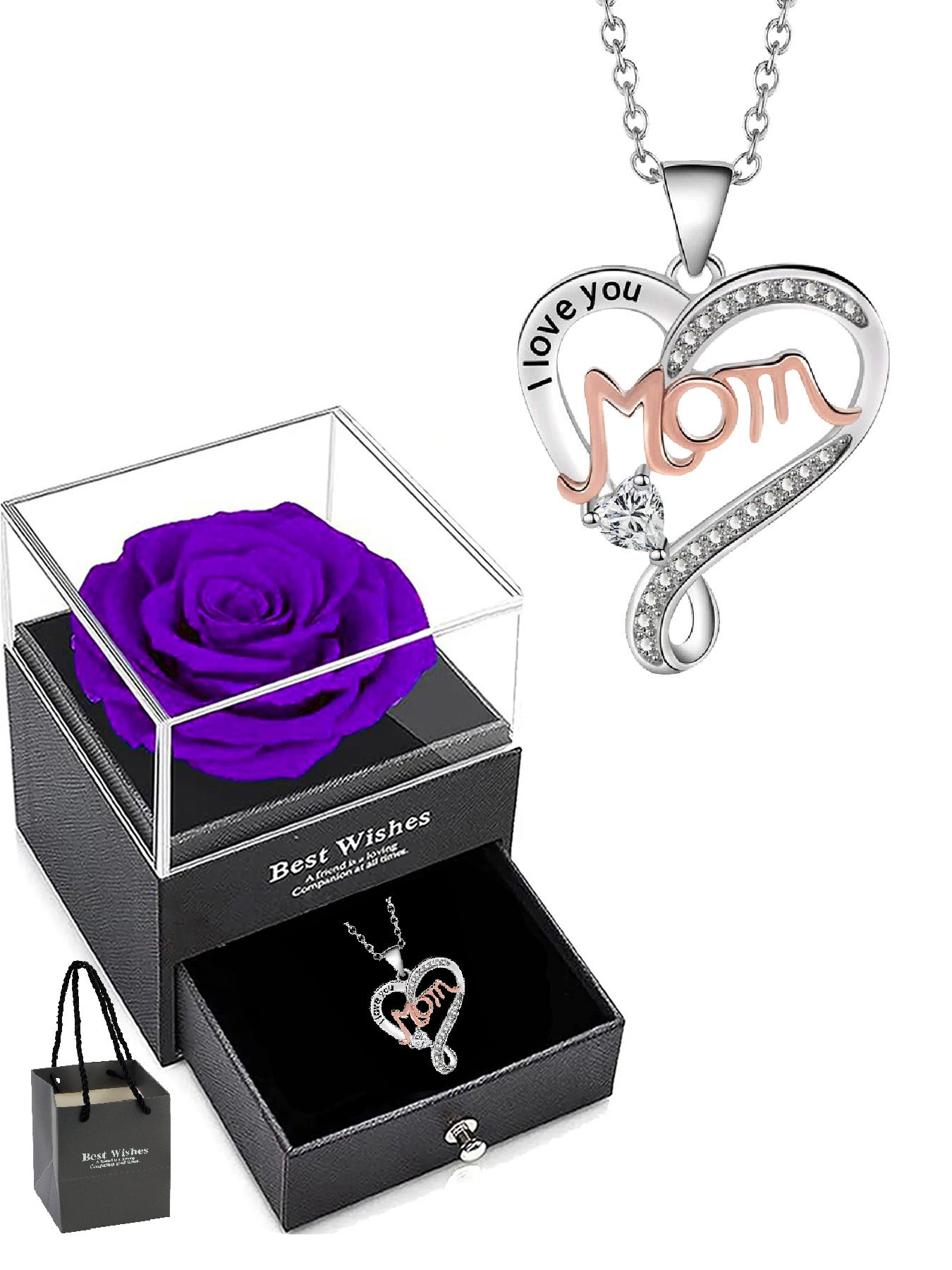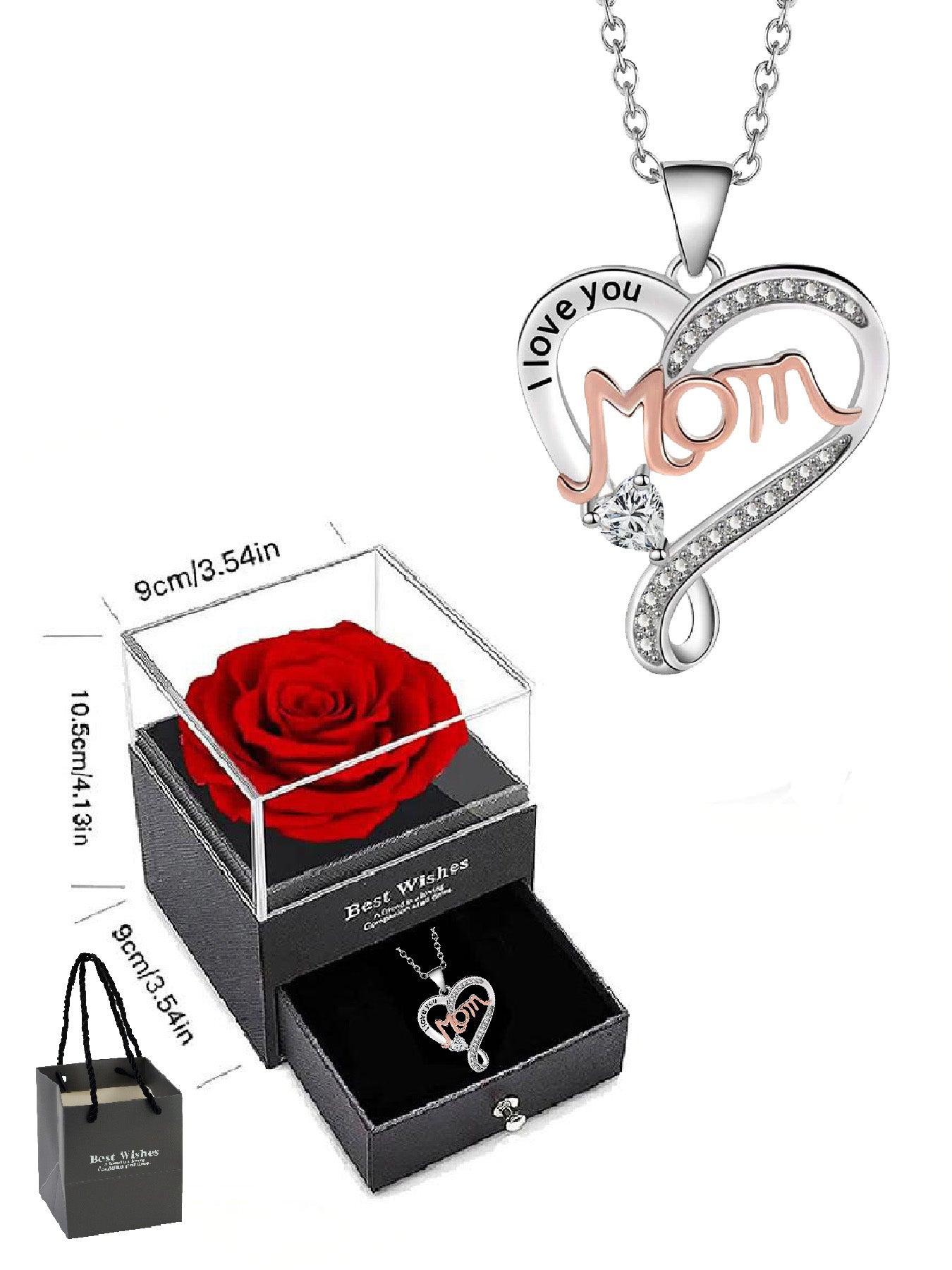 Double heart necklace mom style with eternal rose gift box, women's pendant necklace, women's jewelry gift, mother's day women's necklace, anniversary gift for mom and grandma, mother's day gift, party fashion jewelry, mom women's necklace, anniversary gi
