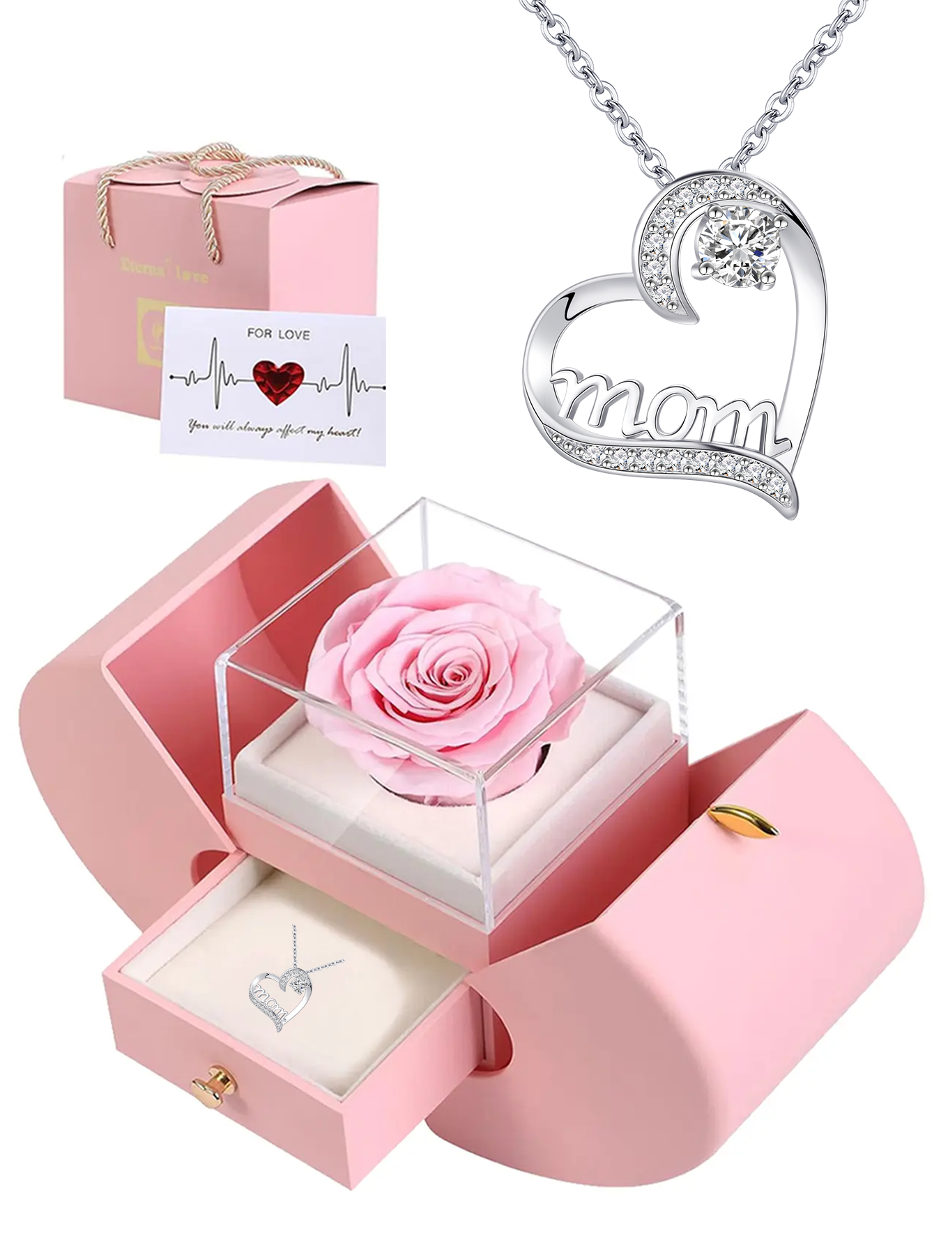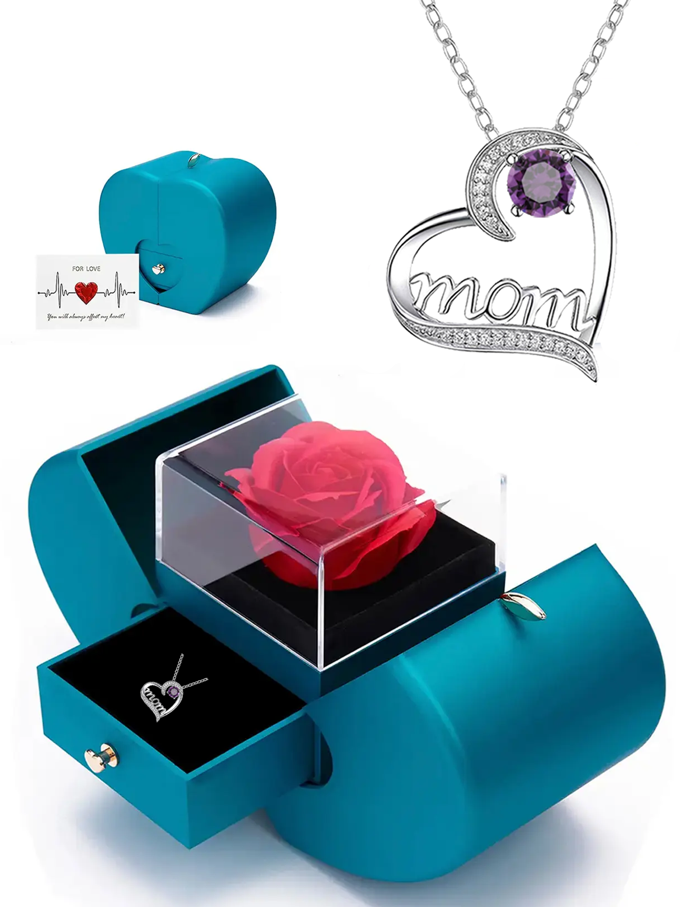 Heart-shaped women's pendant necklace with rose apple gift box, Mother's Day gift for mom, wedding anniversary gift for wife, romantic women's holiday gift, anniversary gift for mom and grandma, female holiday gift